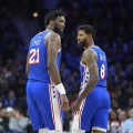 复出之后的两场比赛,恩比德场均出战32分钟,得到32分6篮板4.5助攻1.5盖帽,投篮命中率55.6%,三分命中率66.7%,罚球命中率81.8%。乔治自禁赛归来的两场比赛,场均砍下27分9.5篮板3助攻4抢断,投篮命中率48.7%,三分命中率41.6%(24中10)。